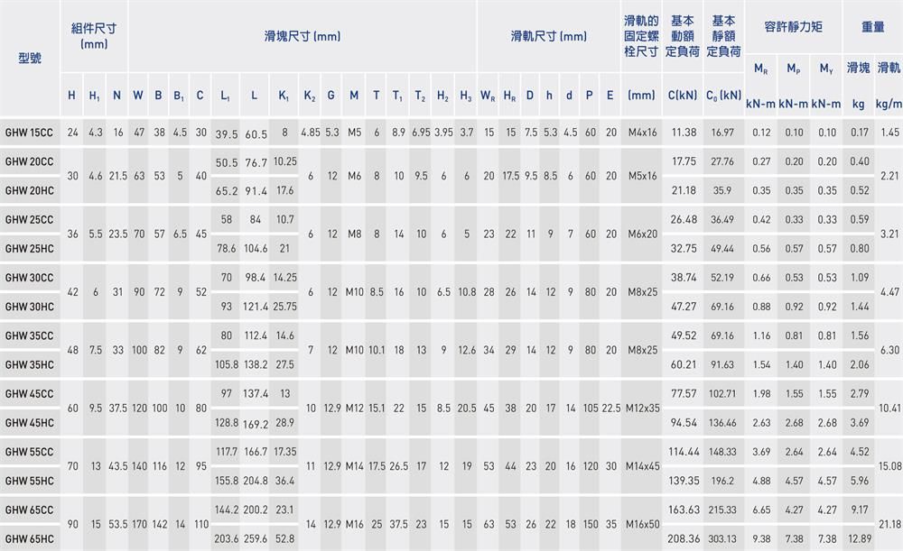 產品名稱:GHH-CA、GHH-HA滾珠式線性滑軌